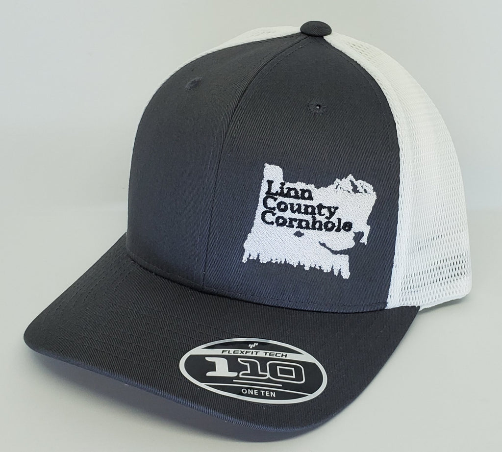 Linn County Cornhole Flexfit (Gray/White) - 110 Mesh-Back Cap - 110M